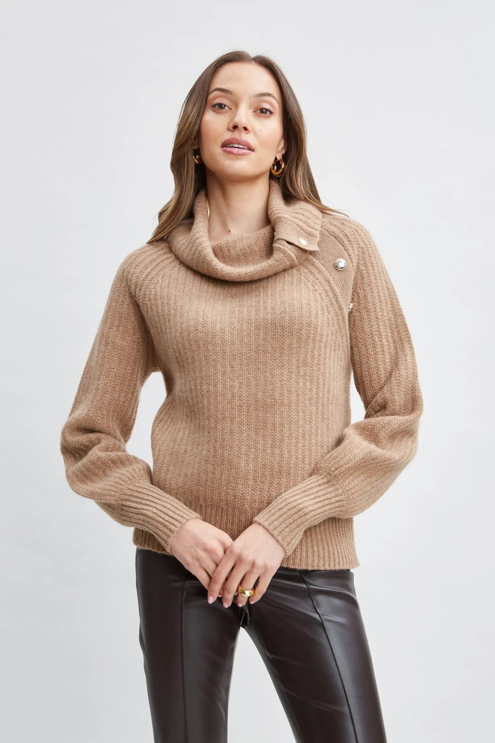 Elevate your turtle-neck wardrobe with our Crest Button Sweater. Designed in luxurious Cashmere, this sweater features an oversized turtleneck collar, crest buttons on the shoulder u0026amp; an relaxed fit. Effortless u0026amp; cool, you will reach for this ultra-soft sweater all season long. Long Sleeve Cashmere Turtleneck Button Sweater 100% Cashmere Runs true to Size Model is 5’9″ and wearing size S Dry Clean Only Imported Style #: ETR44246