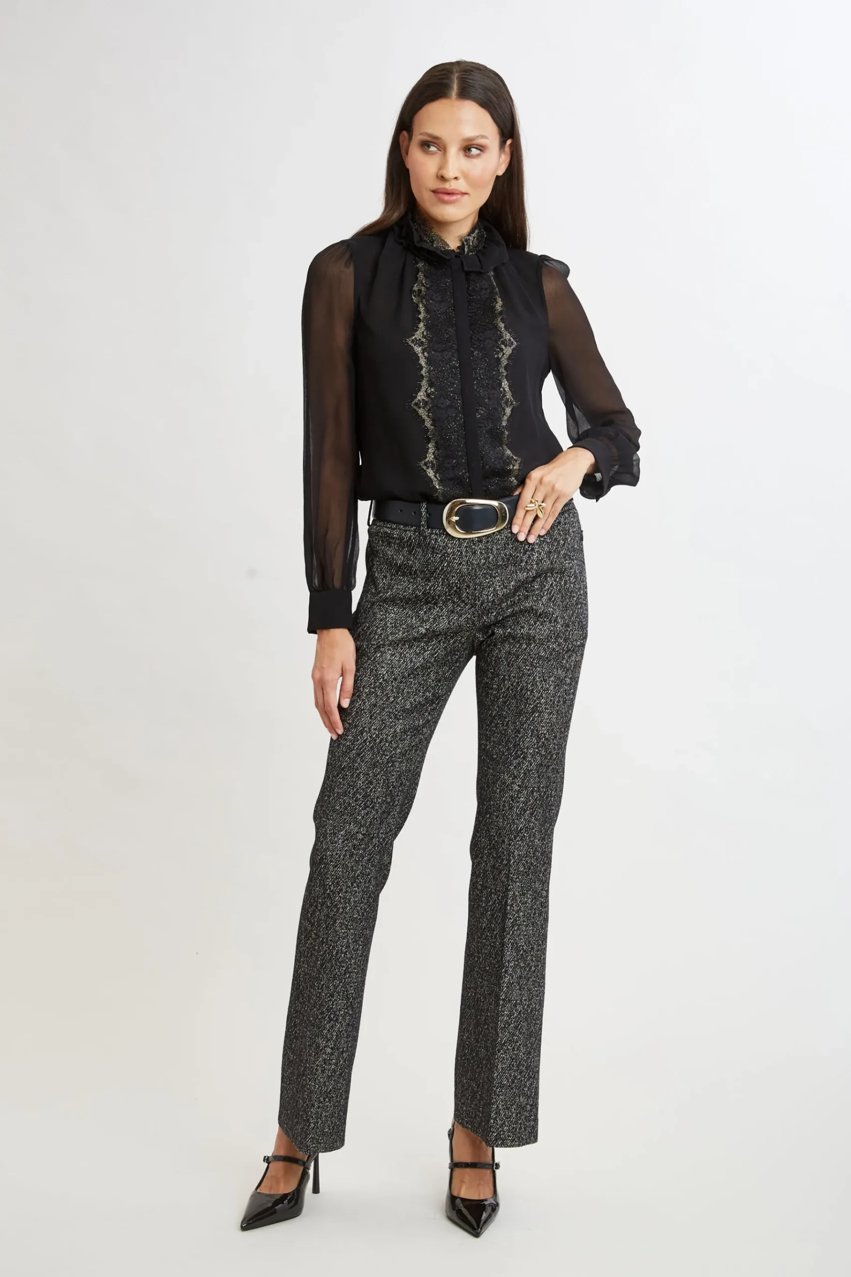 Be the first to review “Elie Tahari Fit & Flare Metallic Tweed Pant- Bottoms|Suiting” Cancel reply
