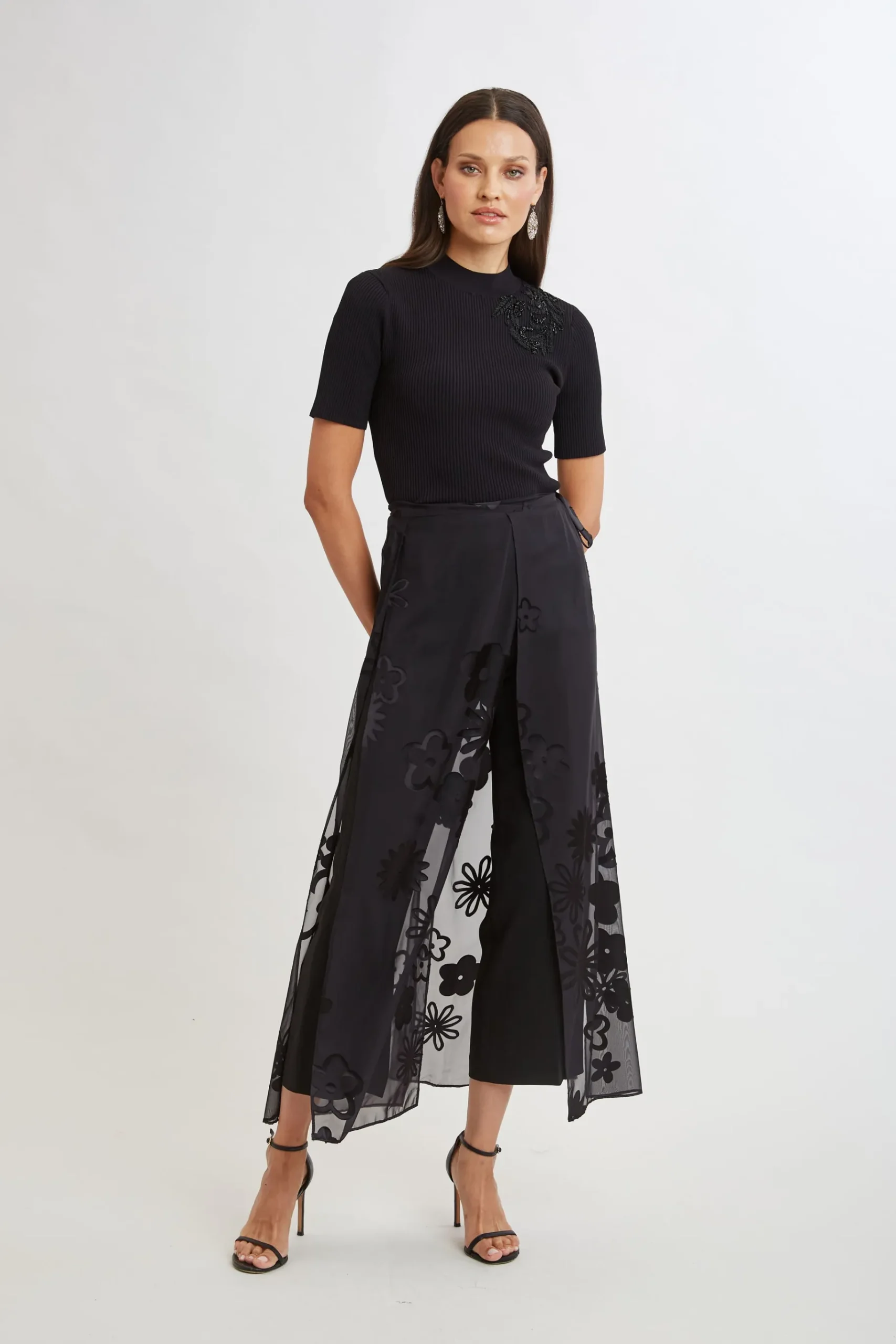 Be the first to review “Elie Tahari Floral Satin Burnout Overlay Pant- Bottoms” Cancel reply