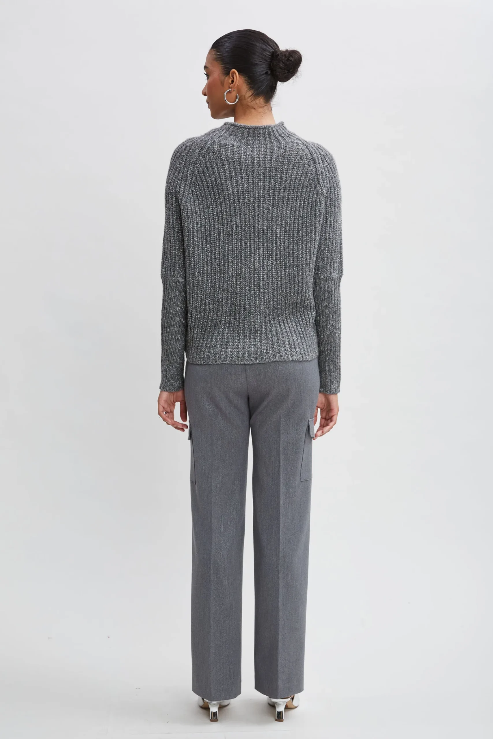 You’ll love the subtle shimmer of this Italian metallic wool blend ribbed sweater. Designed with a mock neckline and raglan sleeves, this relaxed sweater is perfect for when the temperature drops. You will love the look and feel. Elie Tahari Exclusive Metallic Mock Neck Merino Wool Sweater 42% Merino, 41% Polyamide, 17% Metallic Runs true to Size Model is 5’9″ and wearing size XS Dry Clean Only Imported Style #: E95XJ504