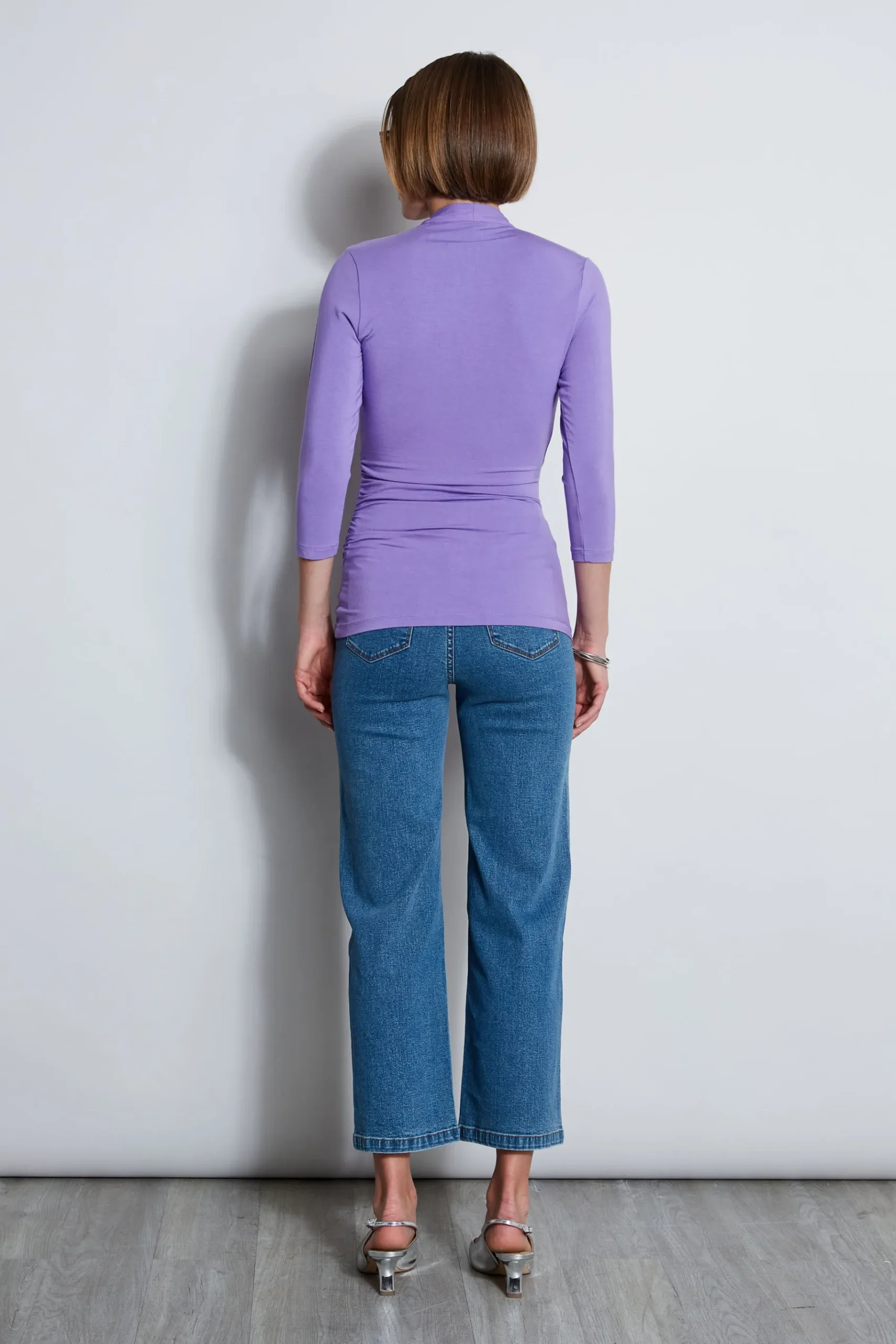 A knit with the cool factor our modern Mock Wrap Jersey Knit has flattering side ruch detailing that gives it artistic expression. This luxe jersey knit will add style and function to your wardrobe. Elie Tahari Exclusive V-Neck Ruched three-quarter Sleeve Knit 95% Modal, 5% Elastane Runs true to Size Model is 5’9″ and wearing size S Length From Shoulder to Hem: Sleeve 17″L, Back 25″L (approx. length for size S) Dry Clean Only Imported Style #: E756X504