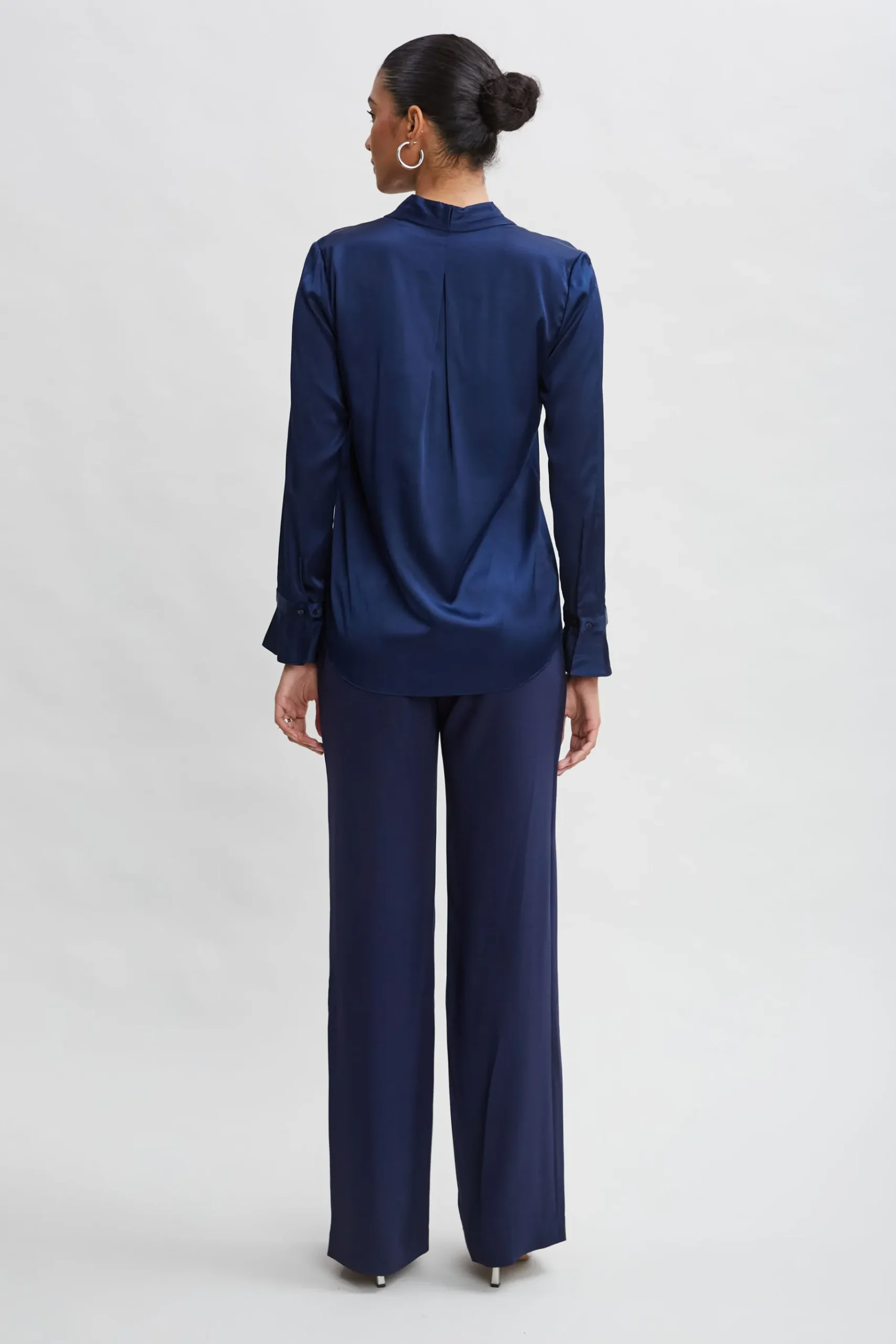 Elie Tahari Silk Satin Contour Neck Ruffle Cuff Shirt- Tops & Sweaters