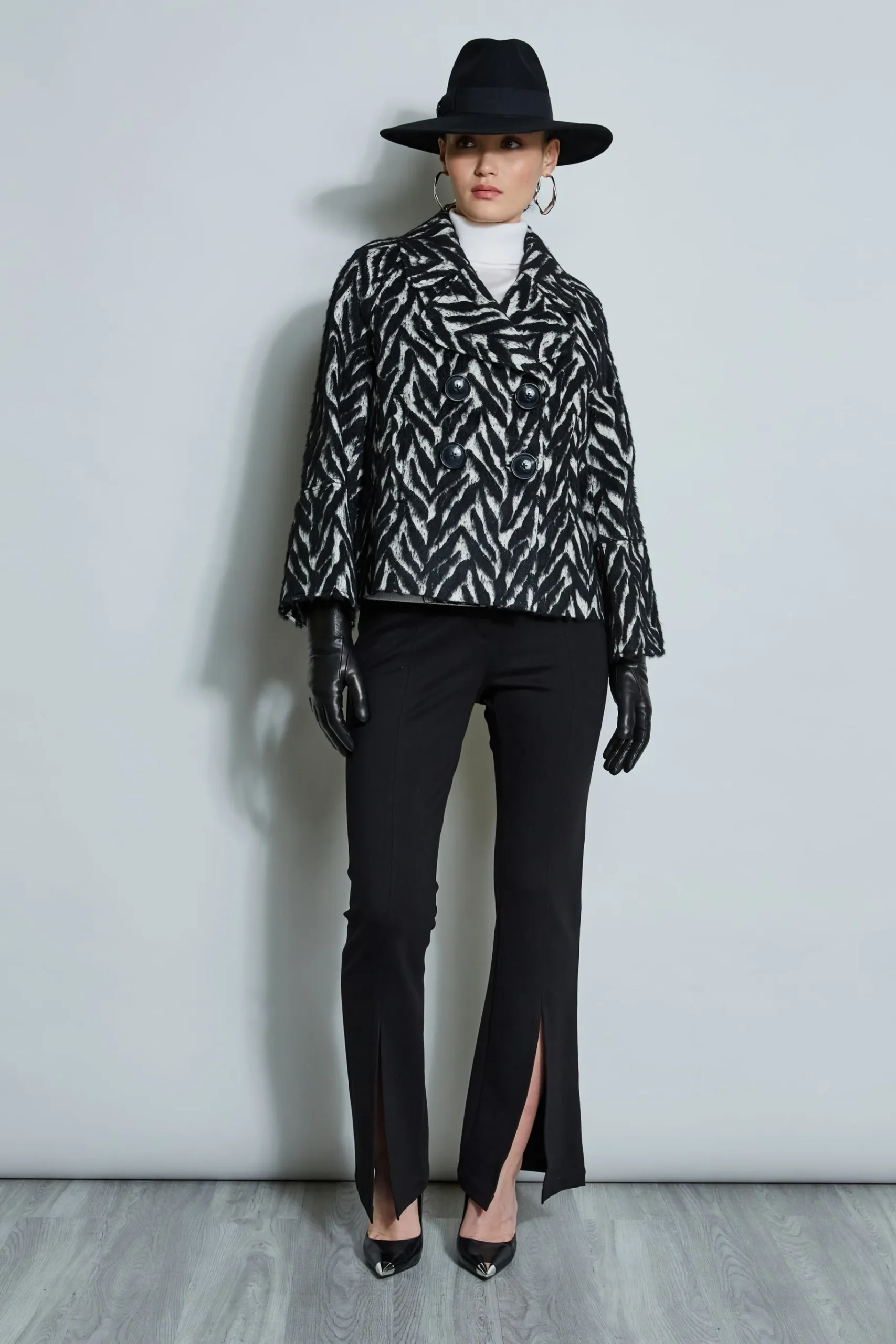 We’re obsessed with our graphic Italian falling leaf jacquard fabric. The Retro Glam look of contoured lapels, bracelet length sleeves and bold buttons reimagine Fall’s animal trend with a chic sporty appeal. Elie Tahari Exclusive Jacquard Wool Peacoat 70% Wool, 25% Polyamide, 5% Runs true to Size Model is 5’10” and wearing size S Length From Shoulder to Hem: Back 23″L , Sleeve: 26.5’L (approx. length for size S) Dry Clean Only Imported Style #: ER01R103