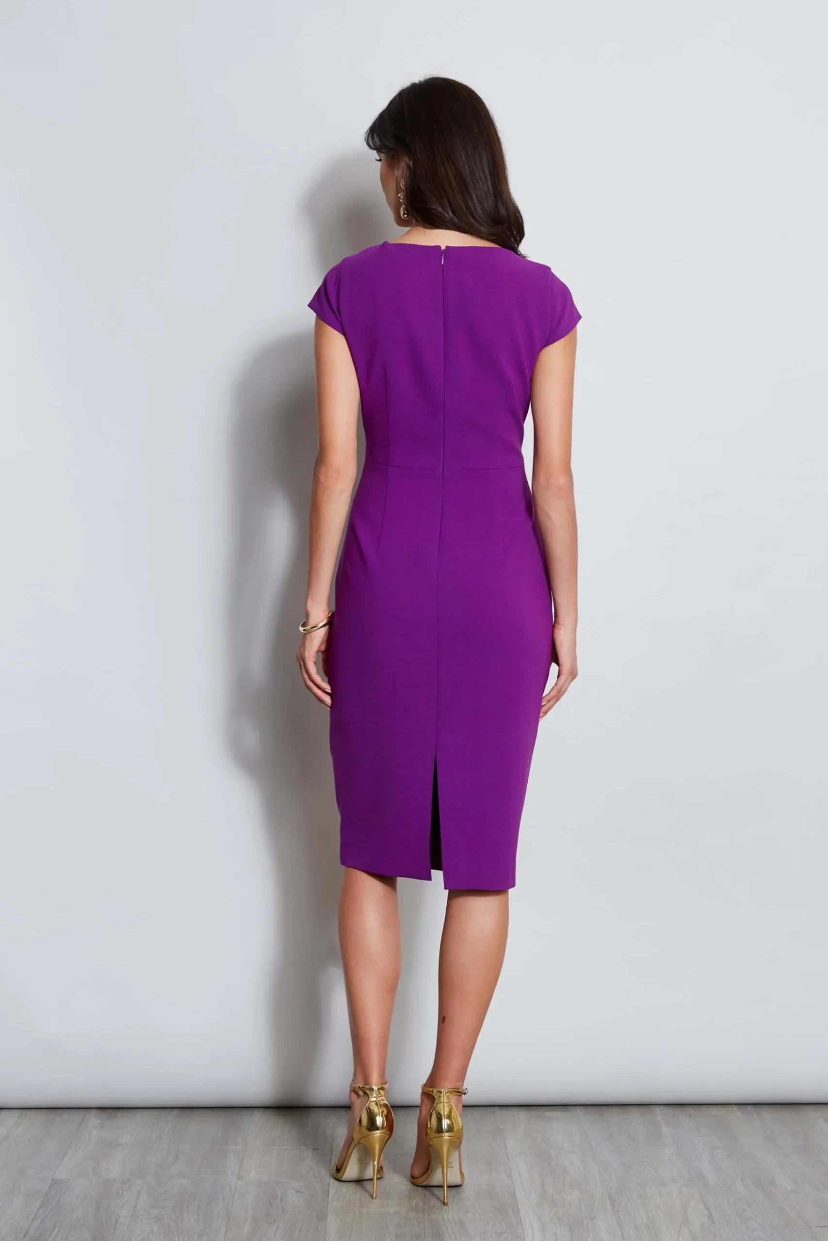 Modern architecture was the inspiration for this sleek body skimming dress in Elie’s favorite Fluid Crepe. The keyhole cut-out and subtle pleat detailing on the neck give it a designer edge – whether for day or a night out. Elie Tahari Exclusive Short Sleeve Keyhole Dart Dress 70% Triacetate, 30% Polyester Fitted; Runs True to Size Model is 5’9″ and wearing size 2 Length From Shoulder to Hem: Back 41.5″L, Sleeve 4.25″L (approx. length for size 6) Dry Clean Only Imported Style #: E8087604