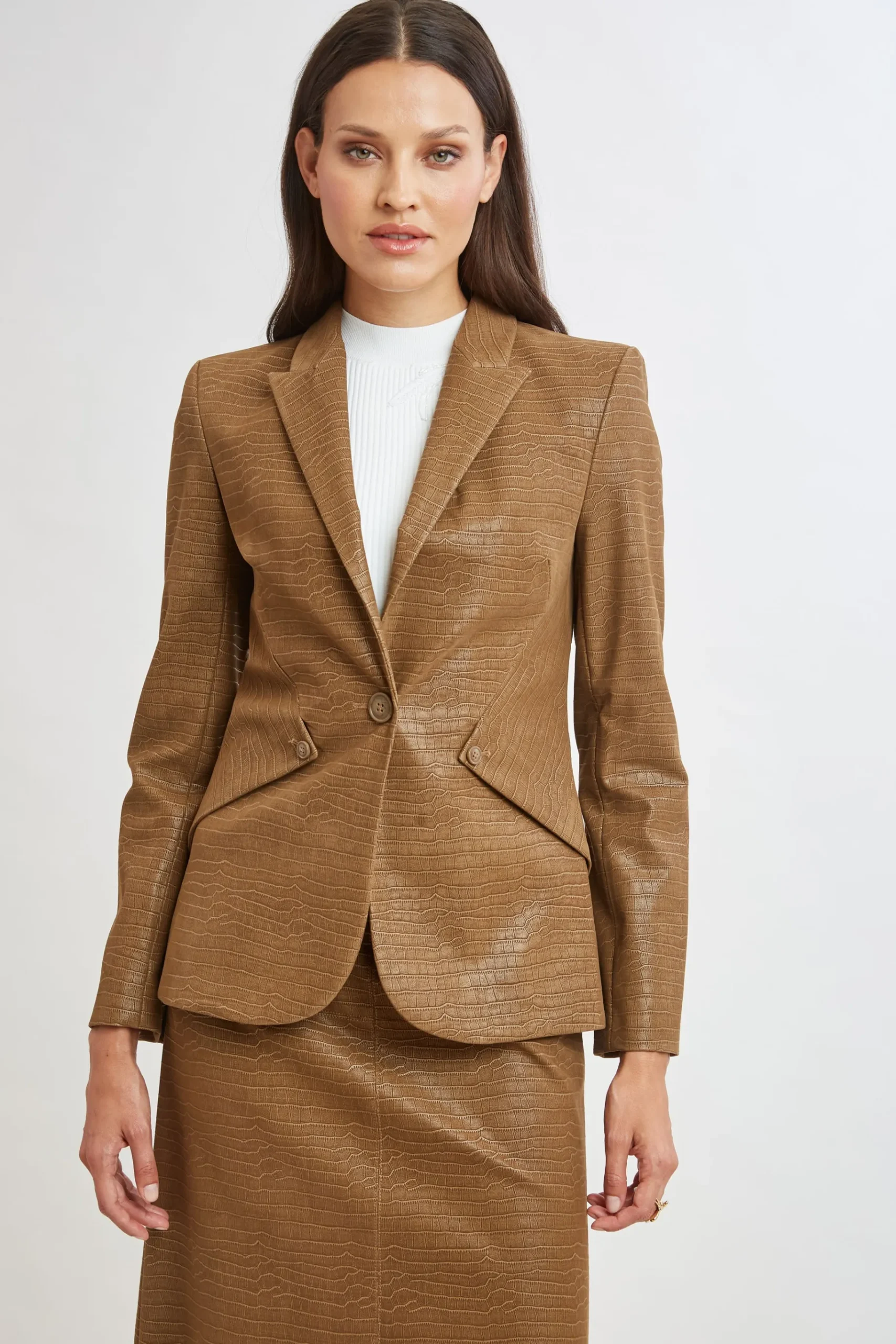 Elie Tahari Croco Embossed Vegan Leather Panel Blazer- Jackets & Blazers|Suiting
