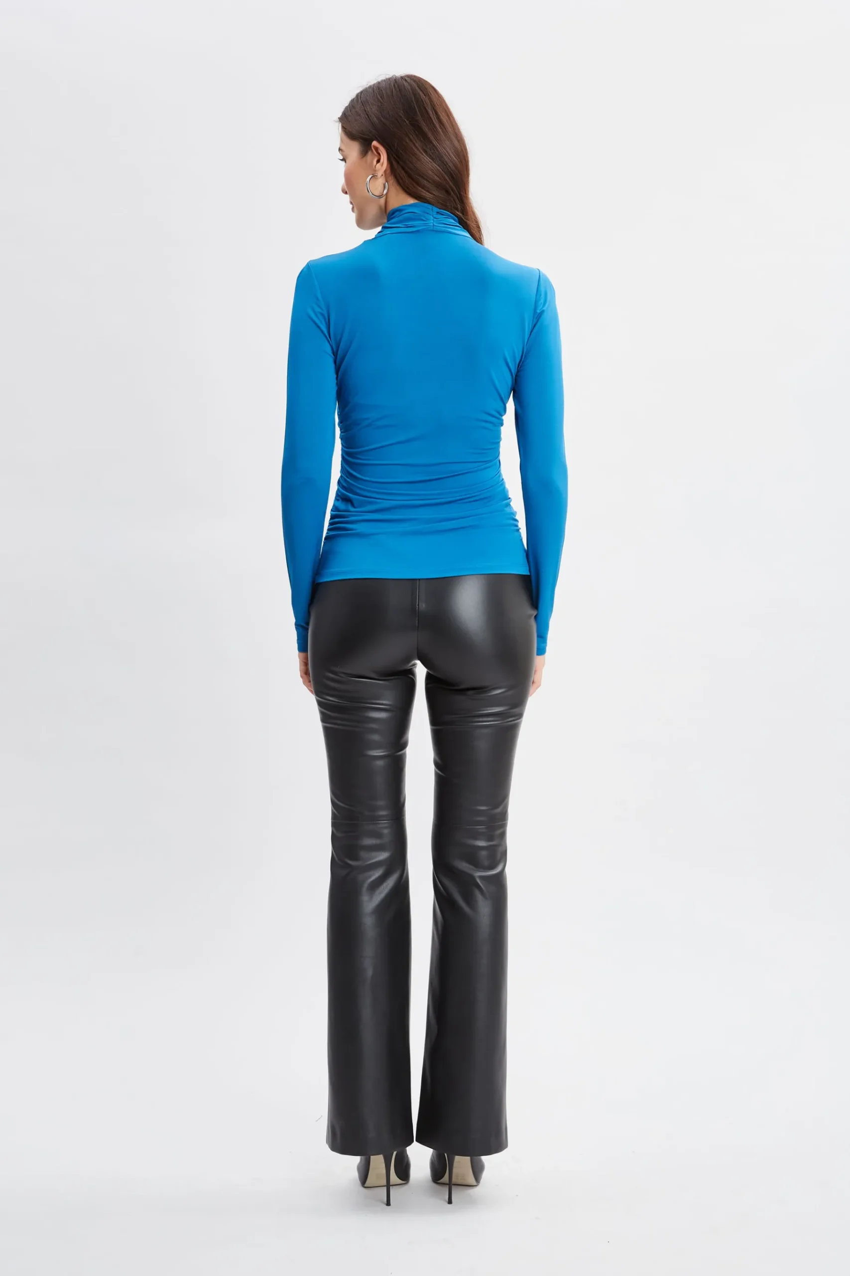 Effortlessly chic, our Crossover Neck Jersey knit will add fashion and function to your Fall look. Crafted in ultra-soft matte Jersey, our Twist Neck Knit¬¨‚Ć that features side ruching creates a cool modern vibe that feels as good as it looks. Elie Tahari Exclusive Long Sleeve Crossover Ruched Matte Jersey Knit T-Shirt 95% Modal, 5% Elastane Runs true to size. Model is 5’9″ and wearing size S Length From Shoulder to Hem: Sleeve 25.25″L, Back 25″L (approx. length for size S) Dry Clean Only Imported Style #: EN55T514