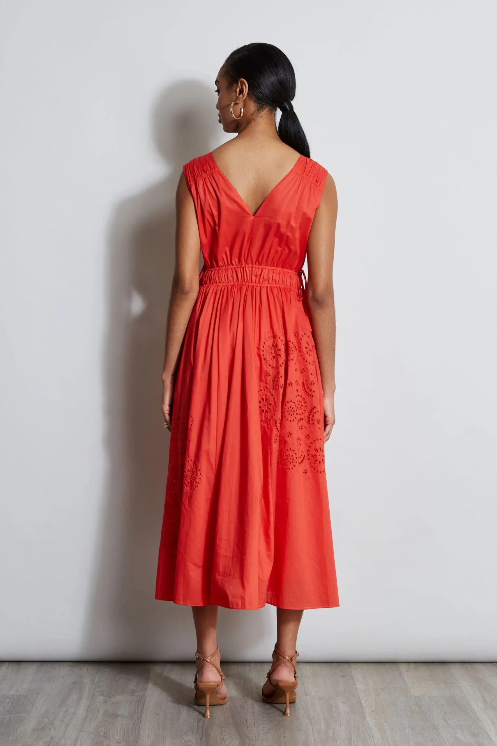 Breathe new life into your wardrobe with our Embroidered Hem Midi Dress. Done in a soft Cotton Poplin, we love the flattering waist tie and the way this dress moves with every step you take. The delicate embroidery and effortless fit make it perfect for wherever you are heading, dressed down with sandals or with strappy heels. Cotton Midi Dress with Embroidery u0026amp; Waist Ties Runs true to size. Model is 5’9″ and wearing size XS Dry Clean Only Imported Style#: ETR41360