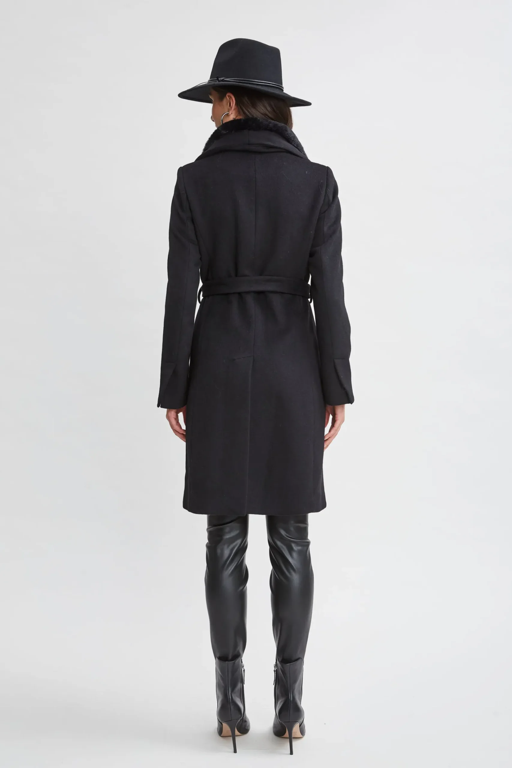 Elie Tahari Faux Fur Collar Wool Wrap Coat- Coats