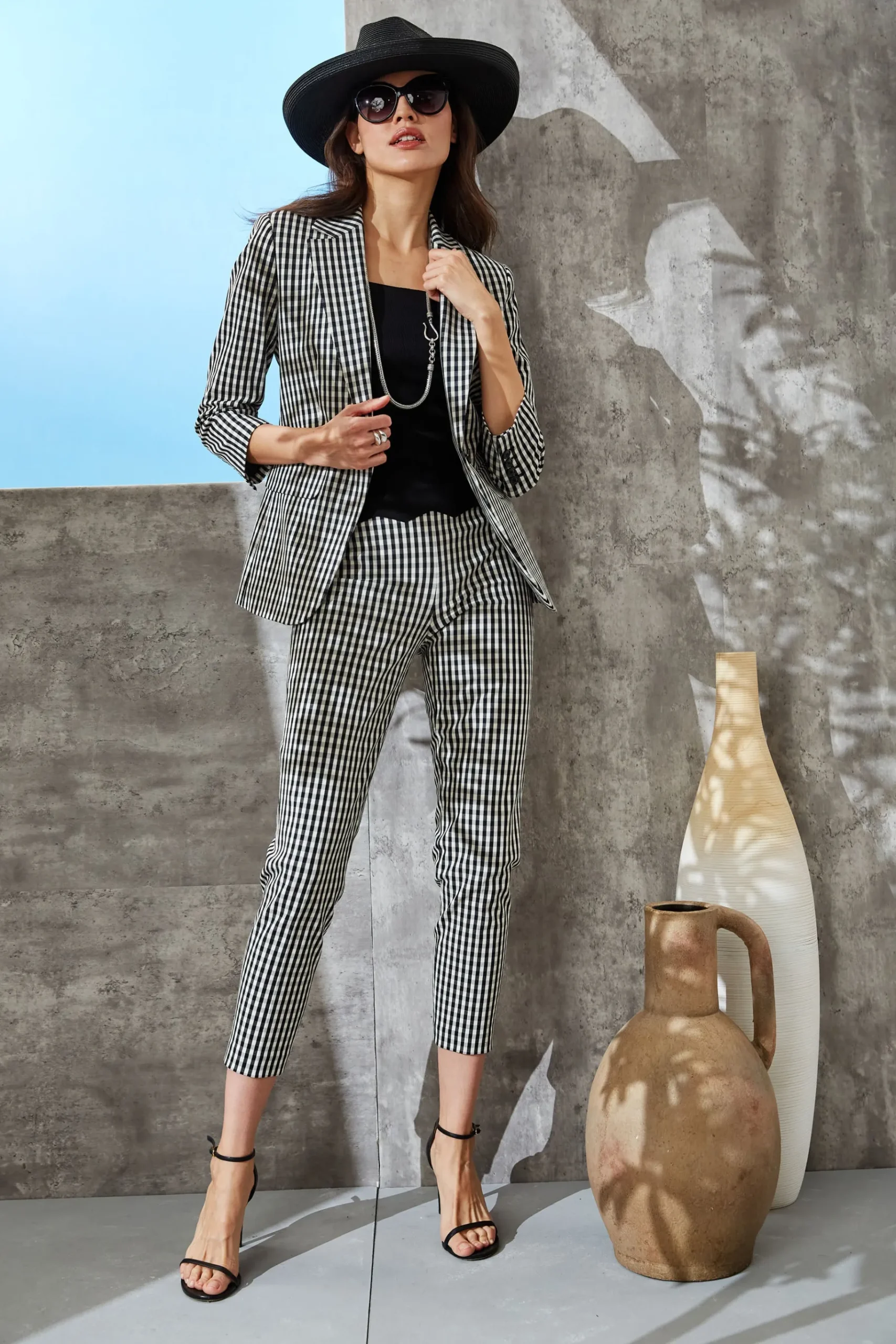 We love the modernity of our Scallop Sweater Tank. The square neckline u0026amp; scallop hem make it perfect for layering under its matching cardigan or wearing on its own. Elie Tahari Exclusive Square Neck Sweater Tank with Scallop Hem 83% Viscose, 17% Polyester Runs true to size. Model is 5’9″ and wearing size S Length From Shoulder to Hem: Back 21.5″L (approx. length for size S) Dry Clean Only Imported Style #: E35XB514
