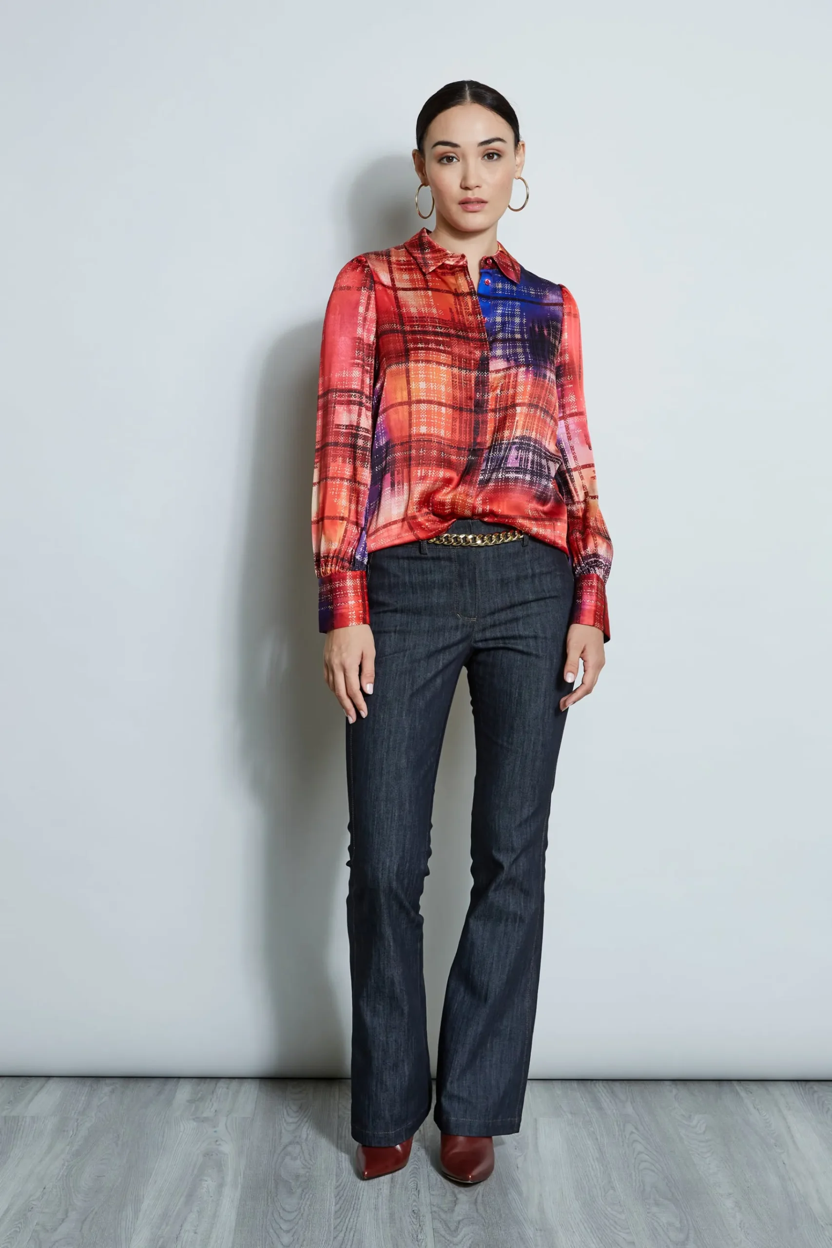Elie Tahari Silk Digital Plaid Shirt- Tops & Sweaters