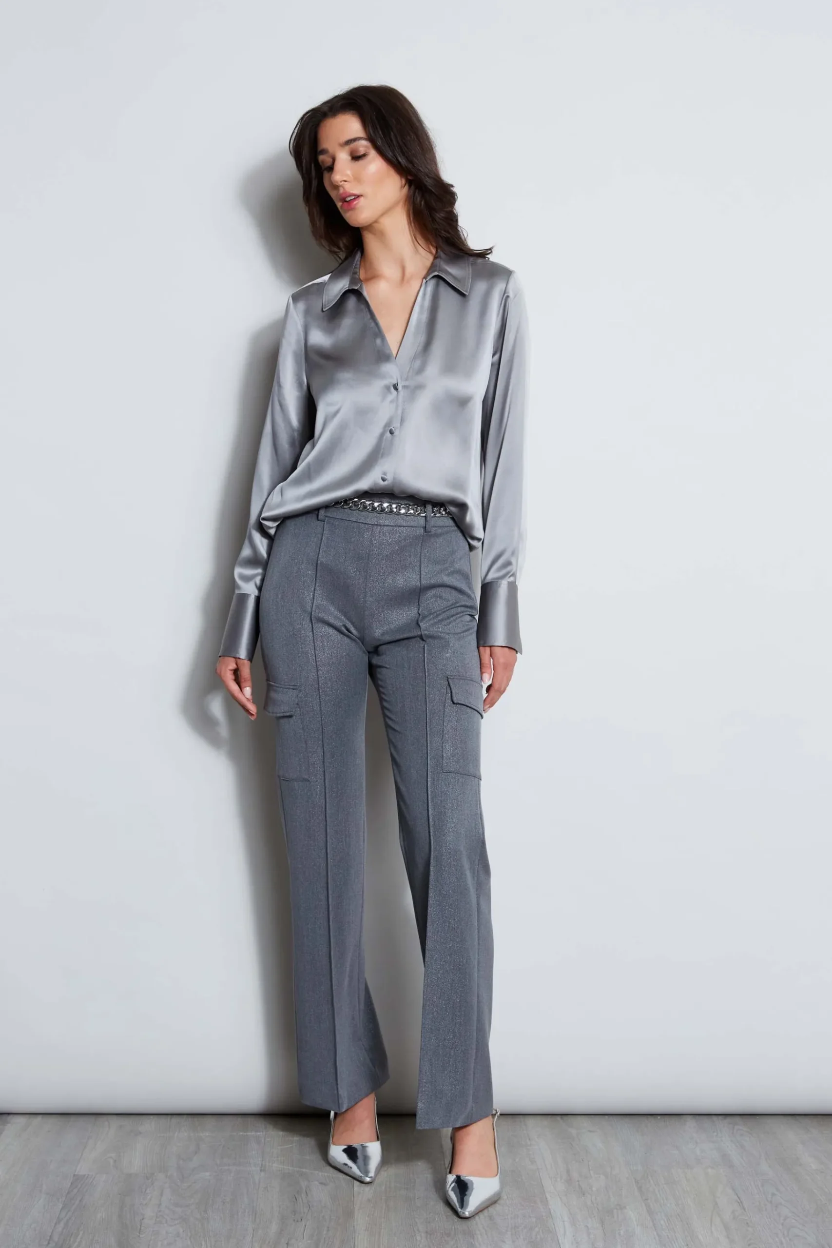 Elie Tahari Silk Satin Button Down Shirt- Tops & Sweaters|Suiting