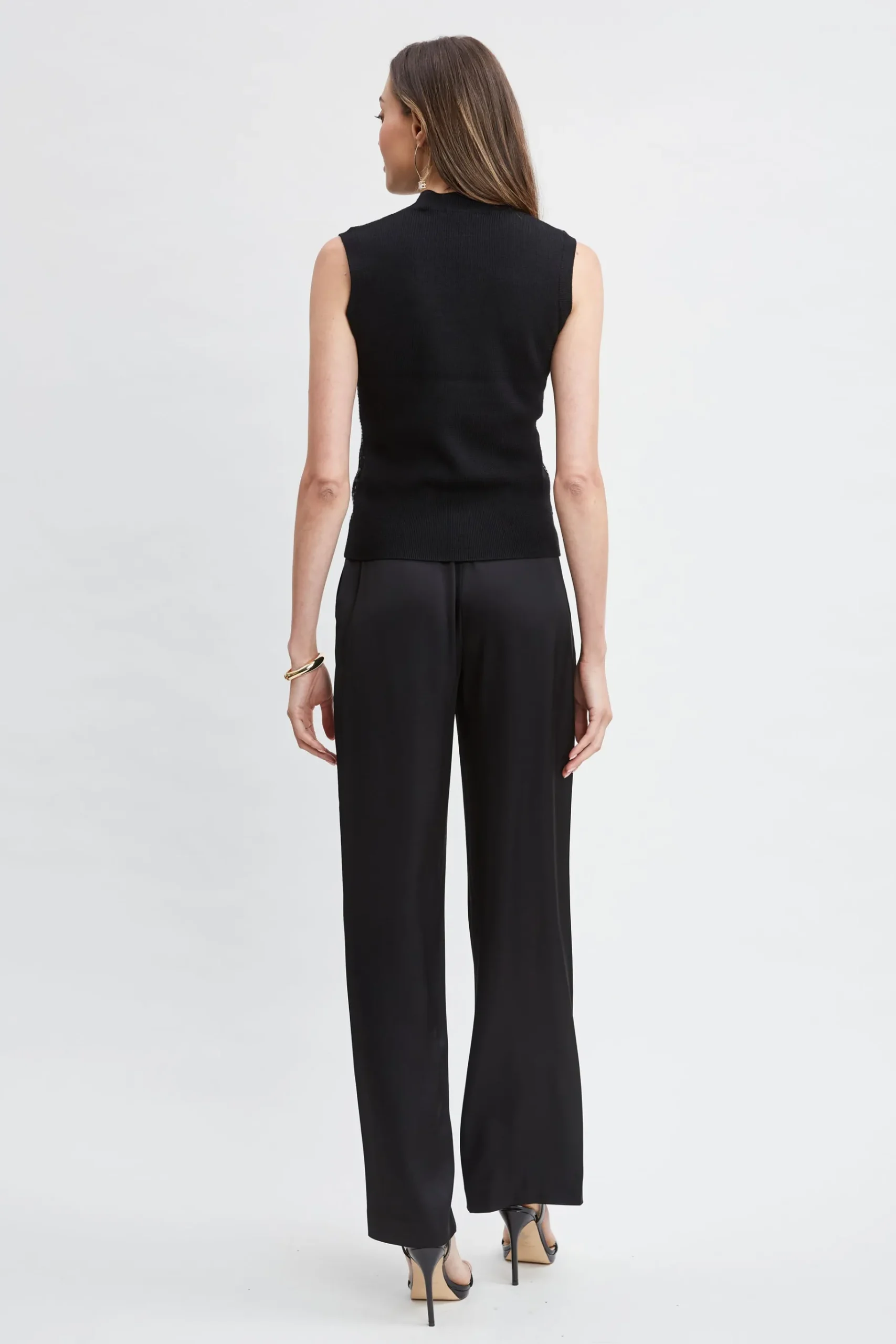Exclusively ours. The Classic-Fit Mock Neck Sweater is reimagined with sequin embellishment. Make a statement in something that makes you feel your best. This sleeveless merino wool sweater exudes glamour. Elie Tahari Exclusive Sleeveless Sequin Front Wool Sweater 100% Merino Wool Runs true to size. Model is 5’9″ and wearing size S Dry clean Imported Style #: ER0X5514